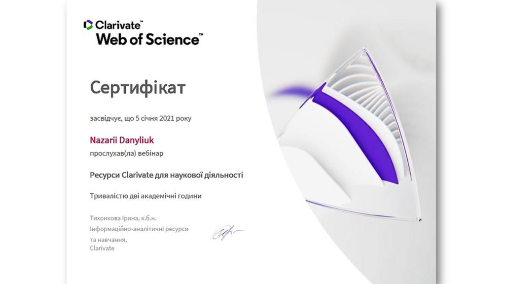 5 січня 2020 року відбувся вебінар на тему «Ресурси Clarivate для наукової діяльності». Лекторка Ірина Тихонкова прояснила такі питання: як користуватися бібліографічними інтерфейсами EndNote і Mendeley, як зареєструватися на платформі Web of Science, а також як користуватися платформою поза межами Читати далі